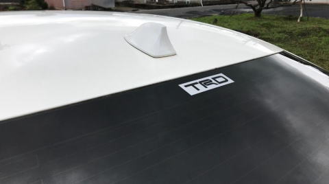 最初はリアガラス最上部に貼るつもりでいましたが、