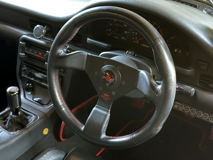 | ステアリング PERSONAL ネオグリンタ33φ(レッドステッチ) F1ワールドチャンピオンシップの歴史に残るパーソナル(personal)ブランド。 現在Nardi-Personal S.p.A.となり、 コンペティションのパーソナル(Personal)として進化。 勝利するために最上級の素材と洗練されたデザインが注がれています。 ステアリングボスは、S-082。 純正より小径かつデザイン重視で選んだもので、 momoと迷いましたが、レッドステッチに惹かれました。 サイズ的にはもっと小径でも良いのですが、 製品ラインナップではこのサイズが最小。 小さ過ぎないので、眼前のメーターは見易いです。 グリップ部の肉厚感はほどよくあり、 ホーンボタンのデザインロゴも格好良い。 難を言えば、乾燥時にはグリップが滑りやすいこと、 素手でのスポーツ走行にはあまり向いていません。 総じて内装とのマッチングよく、大変気に入っています。 |