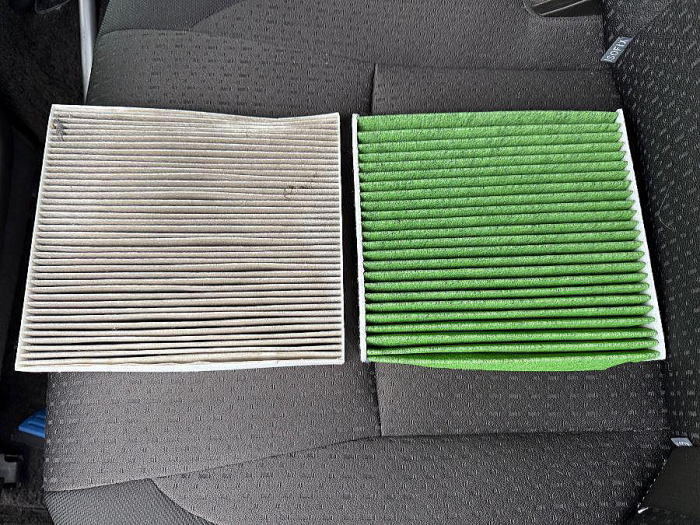 | エアコンフィルター Sunnila クリーンエアフィルター DCC1009 特殊4層構造 長々と交換歴がなかったので、 5年8か月ぶり、6万キロぶりに交換しました。 左の外したほうは、汚れ多く、 異物も残っていたので、これでスッキリ。 この手の製品は価格的に多少のピンキリあり、 今回は社外の安価な部類(右側)をチョイスしました。 |