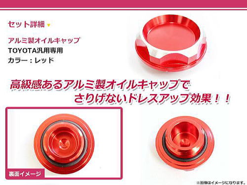 | フューエルキャップカバー 汎用 タイプA レッド オイルフィラーキャップ同様、TRDガーニッシュの貼り付けだけでは満足できなくなり、 純正キャップにすっぽり被せるタイプのものを装着しました。 両面テープで貼るだけ、フィッテイングもグッドです。 こちらも綺麗な赤色で、目立ってます。 |