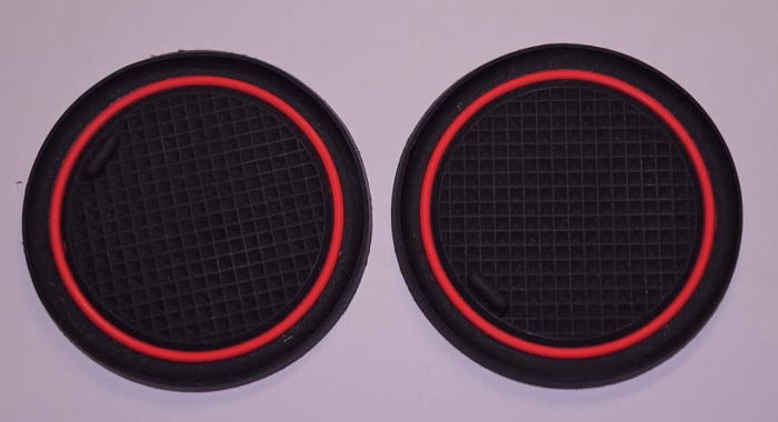| カップホルダーコースター(×2) KINMEI カップホルダーコースター(×2) 直径68mm ドリンクポケットマット 赤 ノンスリップマット 丸型 68-R ドリンクホルダーに鍵を入れておくことがあり、 その際に振動でカタカタ音が出るため、 ホルダーの下にこうしたマットを敷くことにしました。 適当に買ったサイズは直径68mmですが、 もう少し大きめでも入ると思います。 |
